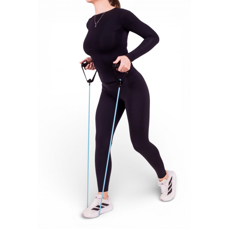Tubular expander with handles, resistance level 2 MaxIQ-MD1306 This expander is a universal fitness tool that allows you to perform a wide range of exercises for different muscle groups, including biceps, triceps, back and buttocks. Its design with handles allows you to perform a variety of exercises for the upper and lower body.