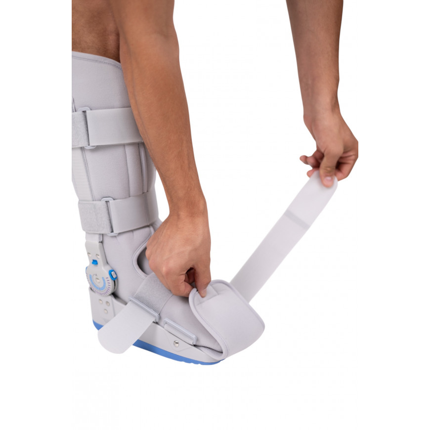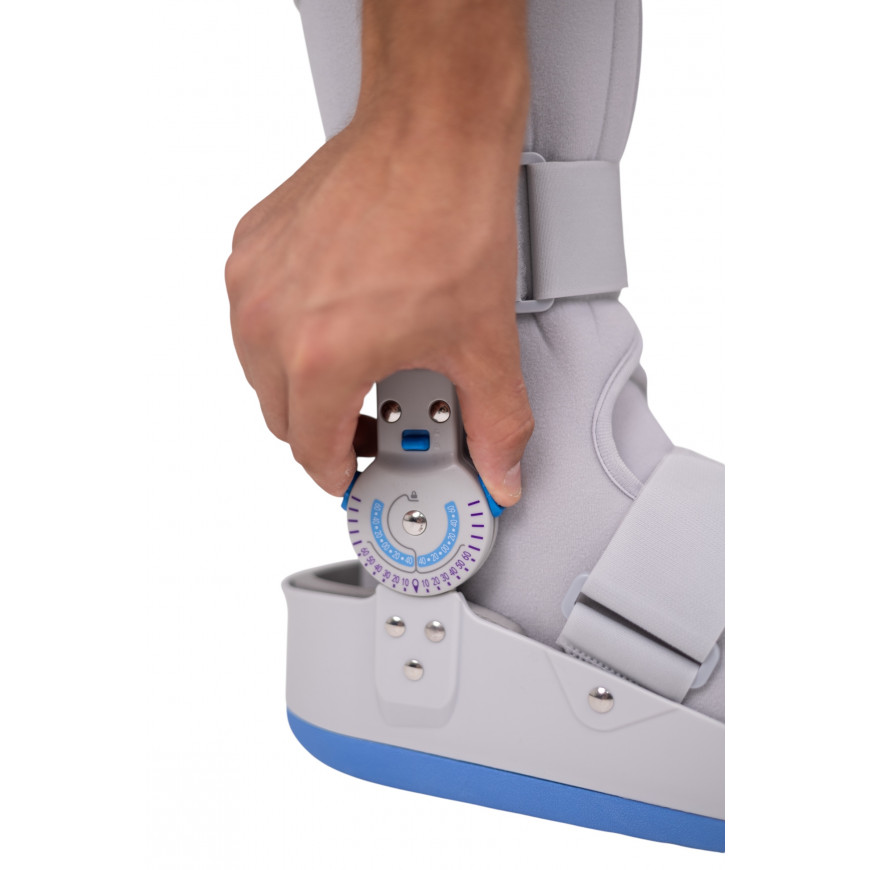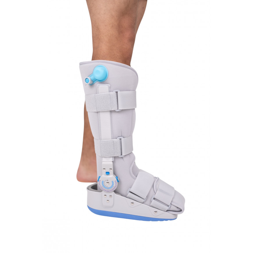 Пневматичний ортез MED1‑TJ‑601(1) – інноваційне рішення для стабілізації та реабілітації голеностопного та нижнього сегменту гомілки. Оснащений регульованим кнопковим механізмом, який дозволяє фіксувати суглоб у заданому положенні або в обмеженому діапазоні рухів, адаптуючись до стадії відновлення .